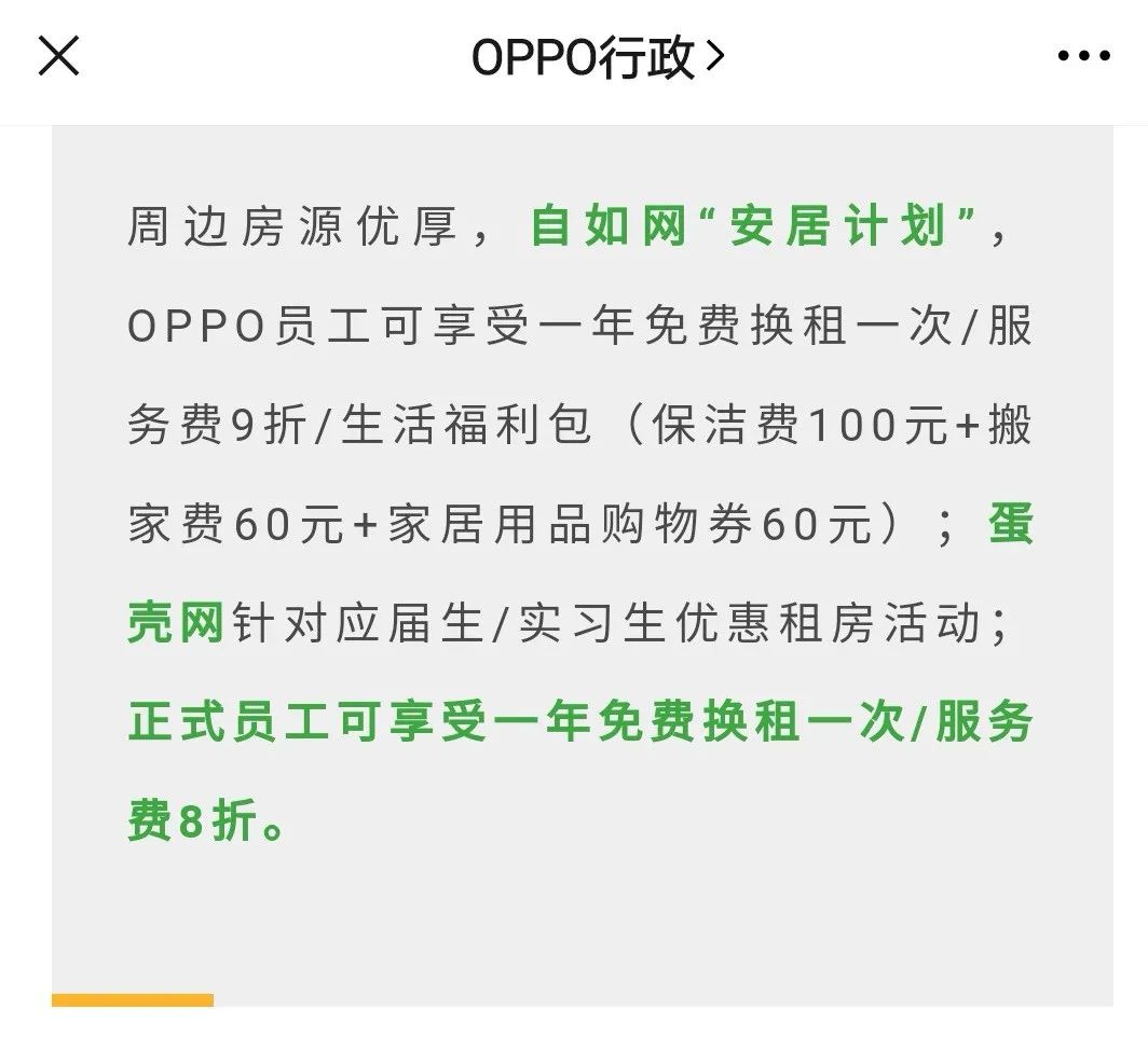 oppo在搬迁通知中,与第三方租房平台合作,为员工提供一年内免费换租、服务费折扣等。