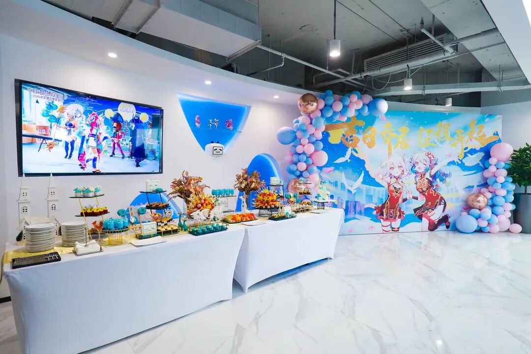 哔哩哔哩·北京的乔迁活动,请了coser来分别cos小电视、22娘和33娘,还可以与他们合影。下午茶也是以品牌色为主,非常有自己的文化特色。