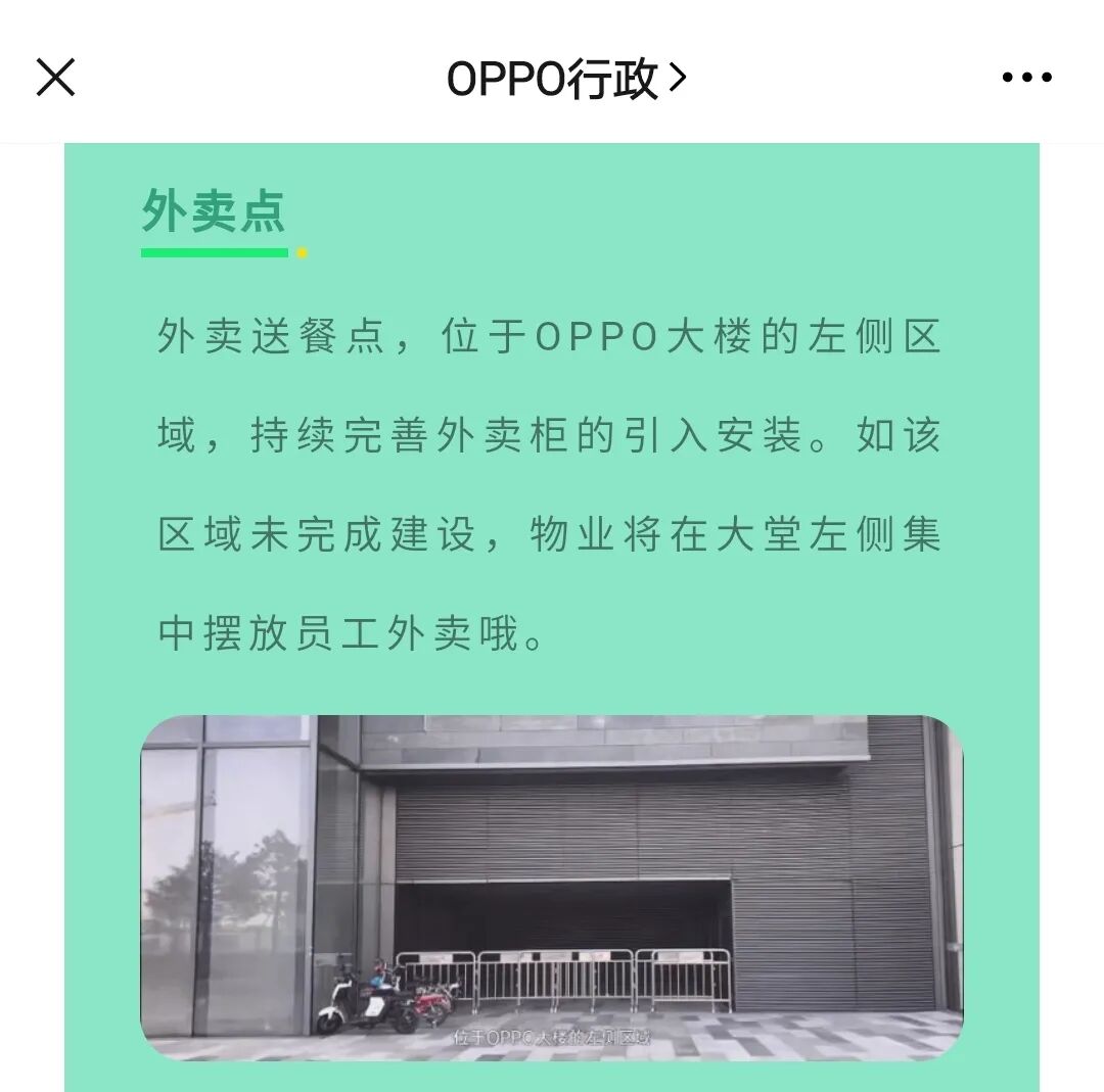 OPPO提前告知员工外卖点的位置,方便员工取餐。