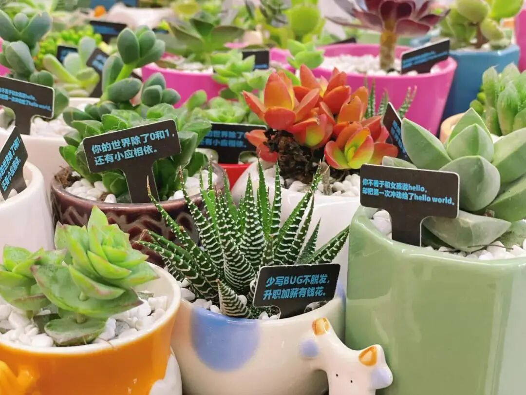 得物技术团队的乔迁活动中,用切蛋糕来共同庆祝乔迁大吉,还为员工准备了多肉盆栽,贴心的附上了专属于技术团队的温馨寄语,最后一起分享了茶歇,共同迎接全新的工作和生活。
