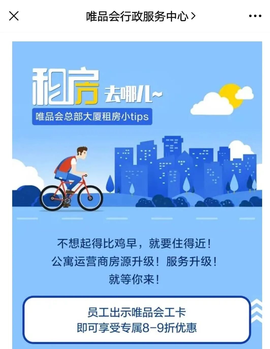 唯品会也与周边第三方机构沟通,为员工申请到不同的租房折扣。
