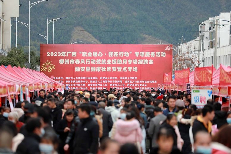 在广西融安县易地扶贫安置点,求职者寻找工作岗位 黄孝邦 摄