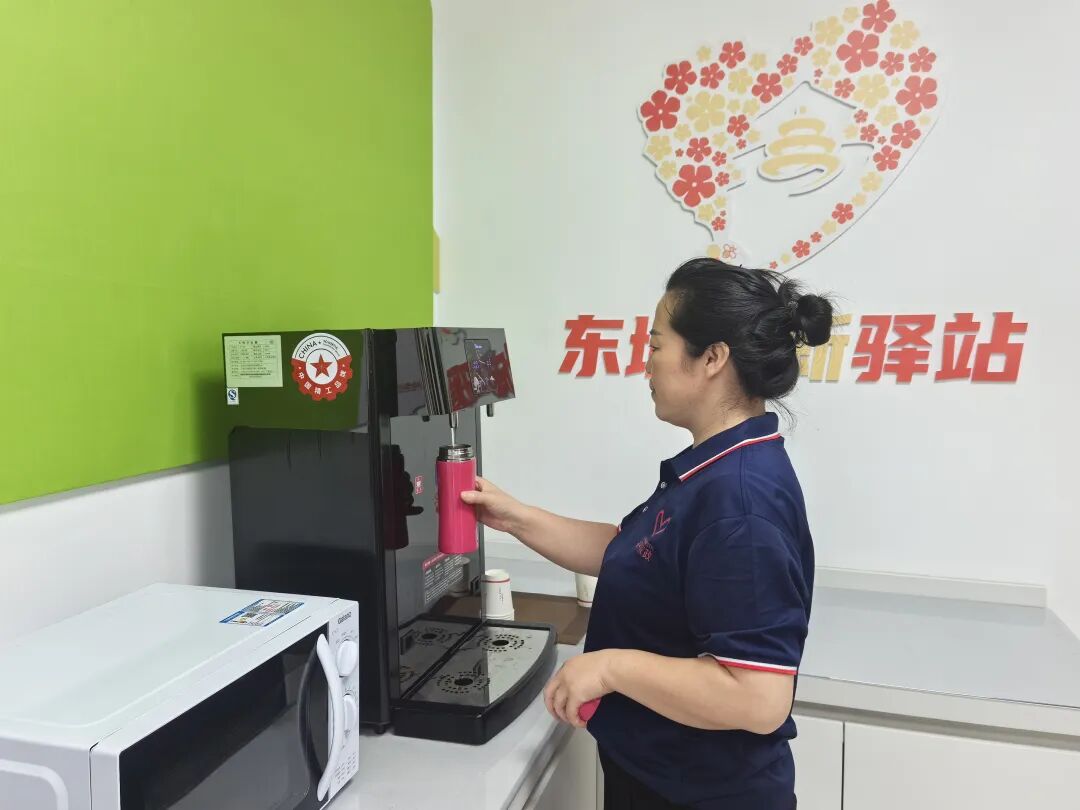 更让刘翠萍惊喜的是楼内完善的配套设施:一层设有公共淋浴房、洗衣房、微波炉和直饮热水机;一、二层均配有独立隔断的卫生间;二层平台是开阔的晾衣区;楼外还设有电动车充电柜。“生活非常方便!”刘翠萍感叹道。她还特意拍下视频发给家人分享,她说:“住着住着,突然有了家的感觉。”